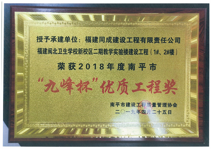 荣获2018年度南平市“九峰杯”优质工程奖